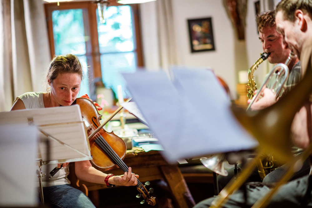 Marie-Theres Härtel (*1983) ist in der Steiermark als Musikantenkind neben dem Tanzboden aufgewachsen und hat dort schlafend in unzähligen Nächten die alpenländische Volksmusik in sich aufgesogen. Sie war Mitbegründerin der Gruppe Netnakisum, eine Vorreiterband der sogenannten "Neuen Volksmusik". Ihr klassisches Musikstudium in Wien schloss sie mit Auszeichnung ab. In unterschiedlichen Ensembles wie der Grazer Oper, der Freien Theatergruppe Göttingen, Laura Winklers Wabisabi Orchester oder der WDR Big Band hat sie Erfahrungen gesammelt. Konzertreisen führten sie u.a. in die USA, nach China, Thailand, Indien, Pakistan und Afrika. Nach längerem Aufenthalt in Berlin, lebt sie inzwischen mit ihrer Familie im Chiemgau. Zurzeit ist Marie-Theres hauptsächlich mit dem Move String Quartet,  dem Härtel Quintett, dem Duo Härtel Trübsbach und Matthias Schriefls Shreefpunk unterwegs, mit welchem sie 2019 den Neuen Deutschen Jazzpreis gewann.